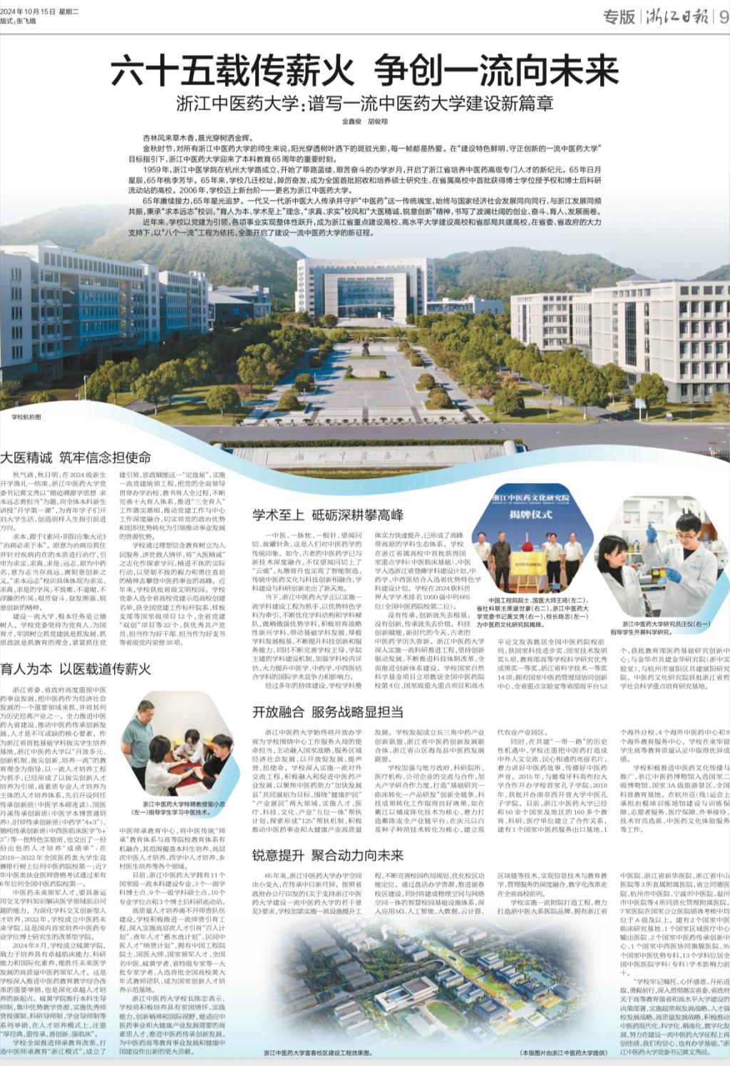浙江日报:六十五载传薪火 争创一流向未来 久久精品一区二区三区四区:谱写一流中医药大学建设新篇章