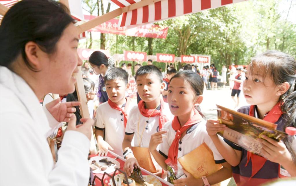 在文化园广场,学生们学习中医药养生护眼操、体验艾草香包制作。“这次活动让我更好地认识了历史人物,也让我更了解了中医药,原来中医药文化也可以这么有趣。”赤岸初中学生张可欣说。