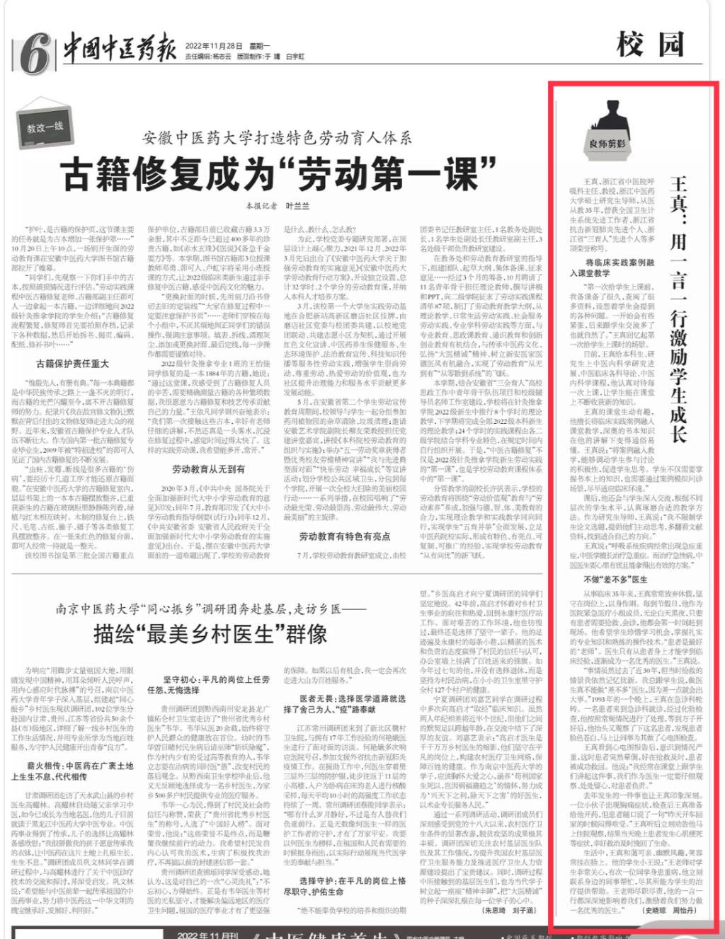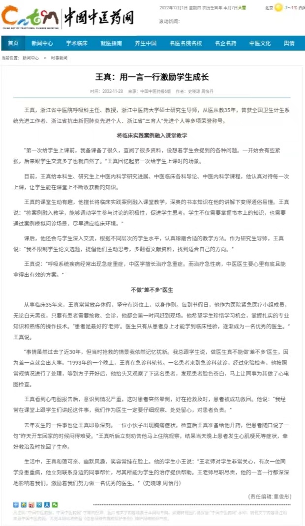 中国中医药报、中国中医药网:王真:用一言一行激励学生成长
