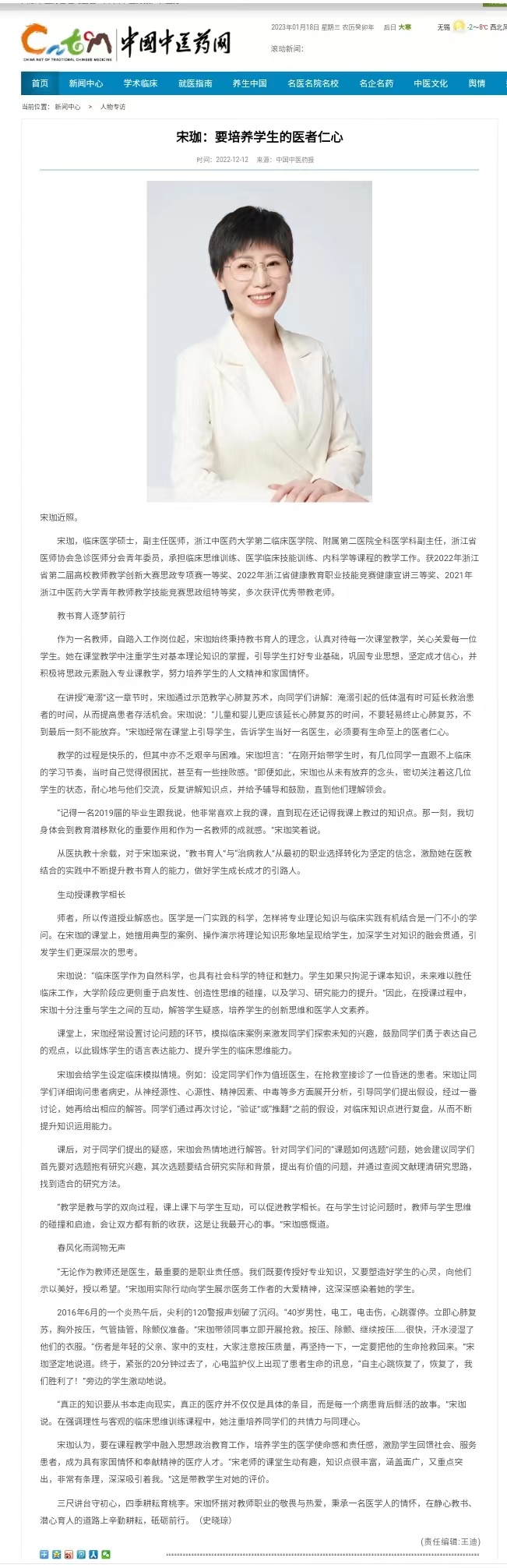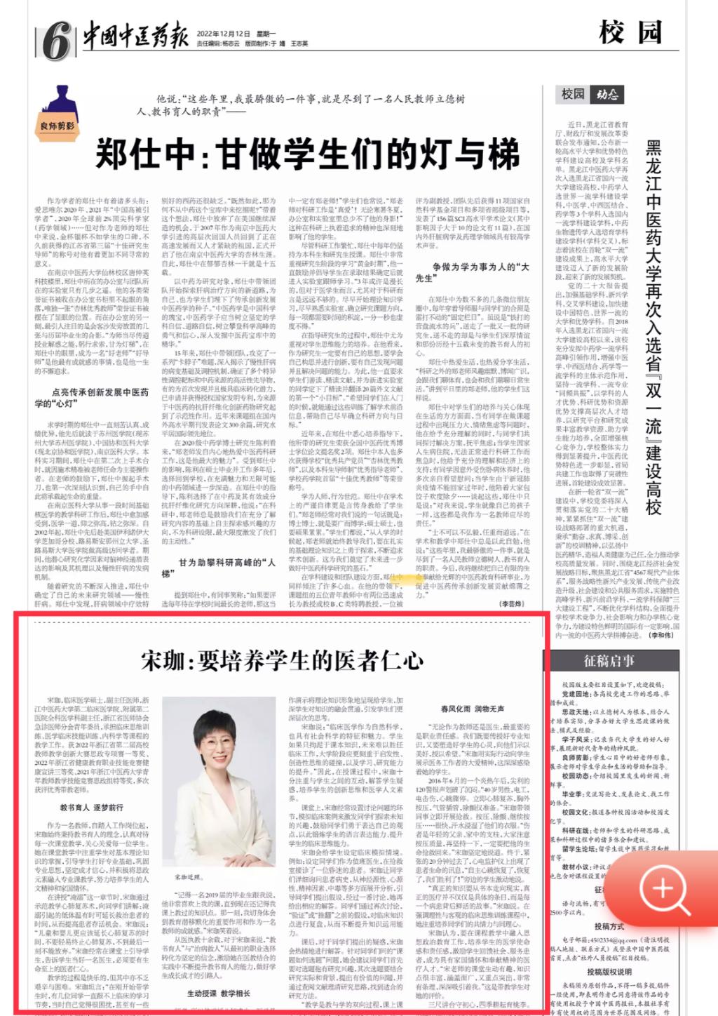 从医执教十余载,对于宋珈来说,“教书育人”与“治病救人”从最初的职业选择转化为坚定的信念,激励她在医教结合的实践中不断提升教书育人的能力,做好学生成长成才的引路人。
