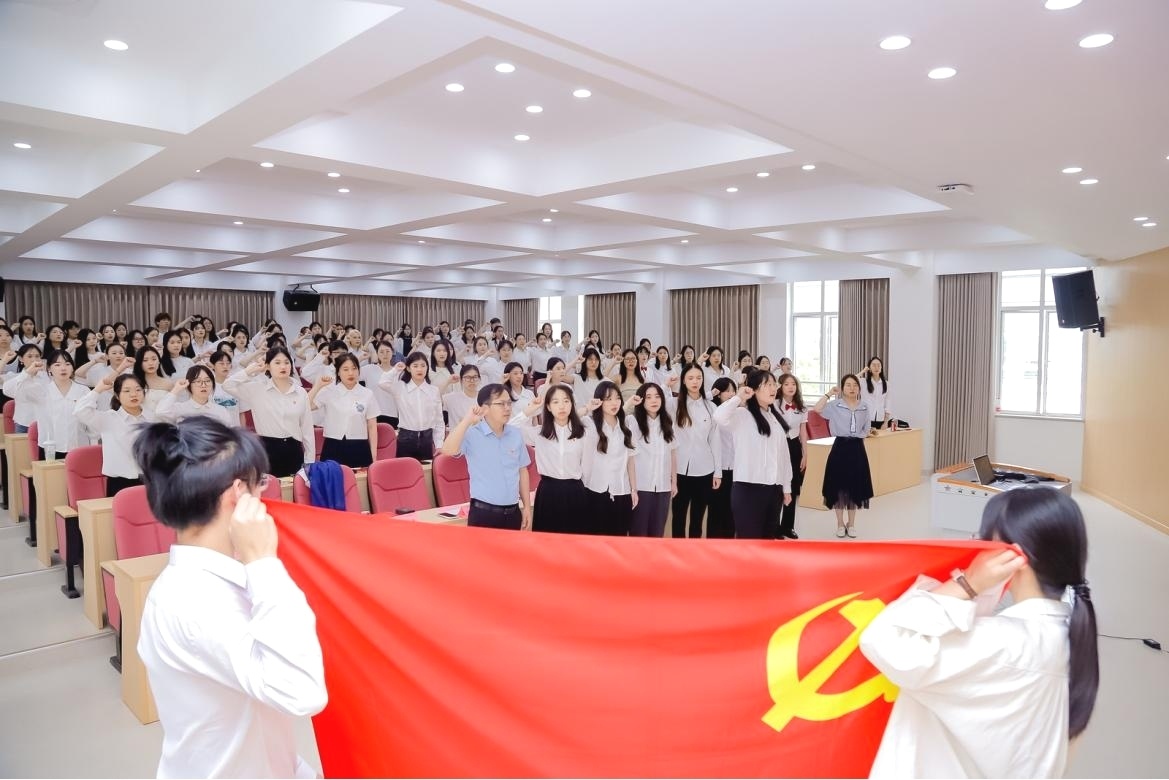 这铿锵有力的誓言,飘扬在六月的天空,深深扎根在毕业生党员心中。