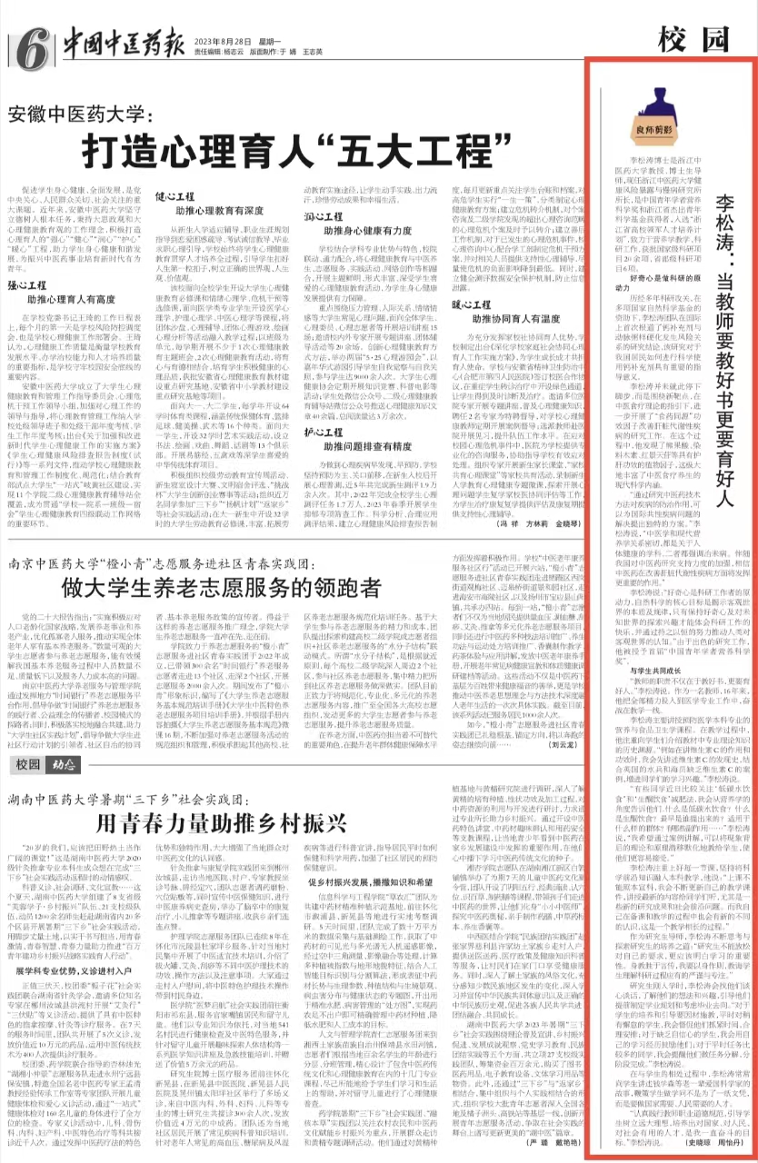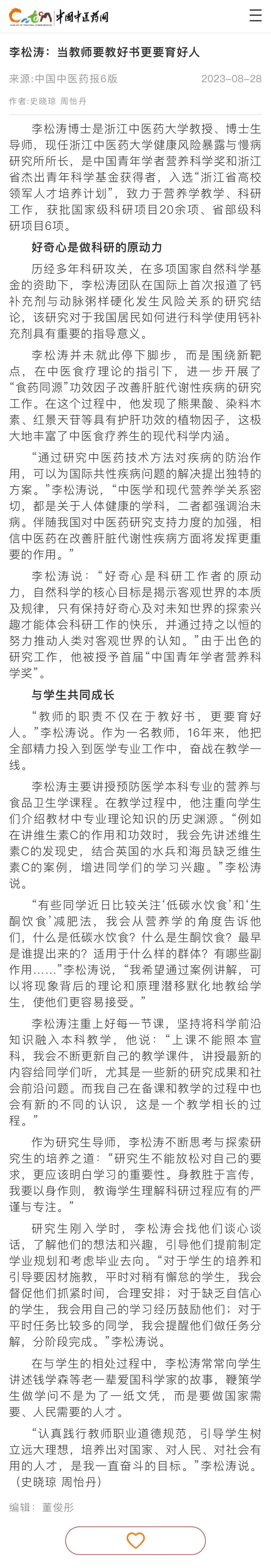 中国中医药报、中国中医药网:李松涛:当教师要教好书更要育好人