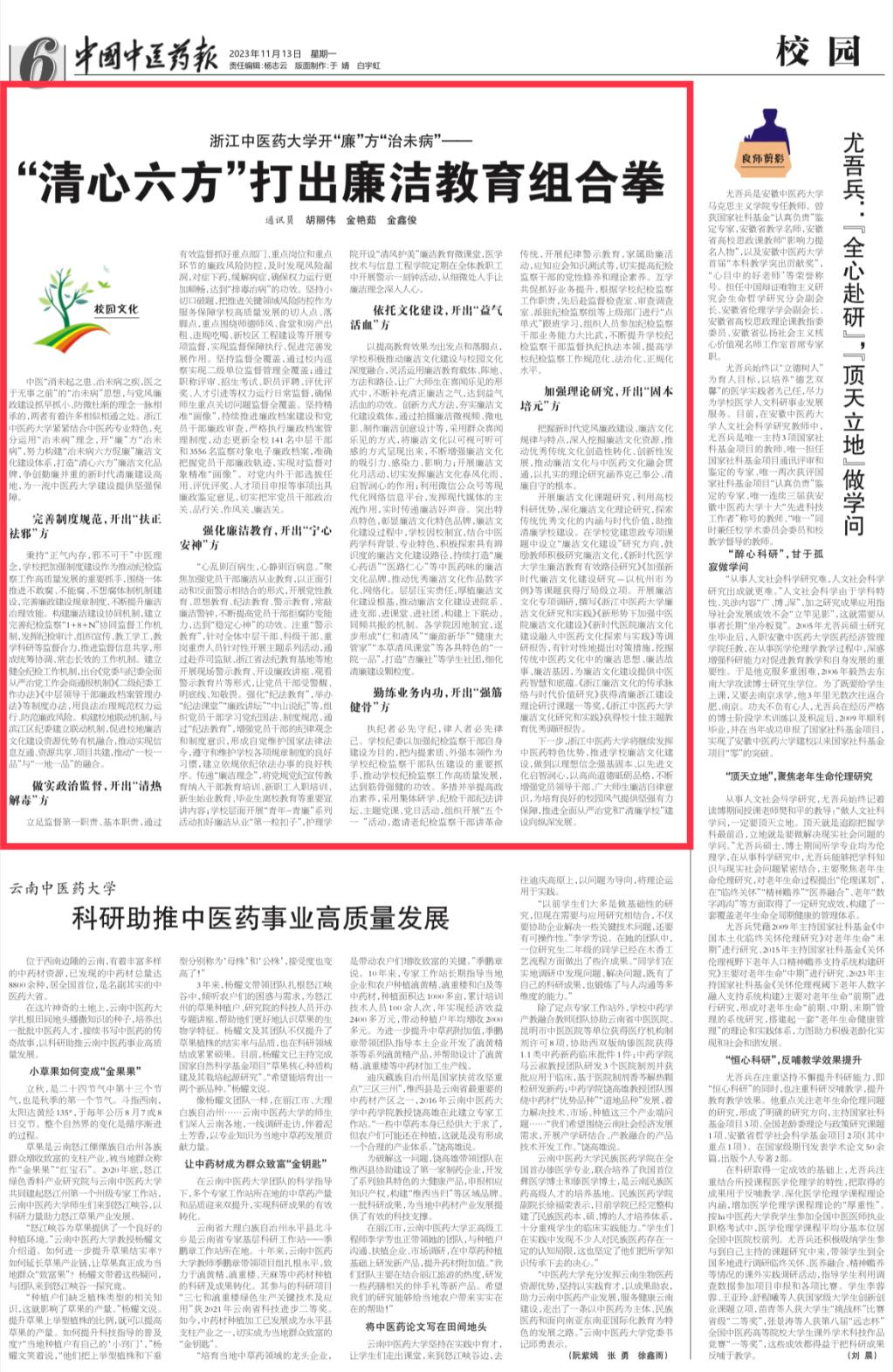 中医“消未起之患、治未病之疾,医之于无事之前”的“治未病”思想,与党风廉政建设抓早抓小、防微杜渐的理念有着许多相似相通之处。久久精品一区二区三区四区紧紧结合中医药专业特色,充分运用“治未病”理念,开“廉”方“治未病”,努力构建“治未病六方促廉”廉洁文化建设体系,打造“清心六方”廉洁文化品牌,争创勤廉并重的新清廉建设高地,为一流中医药大学建设提供坚强保障。