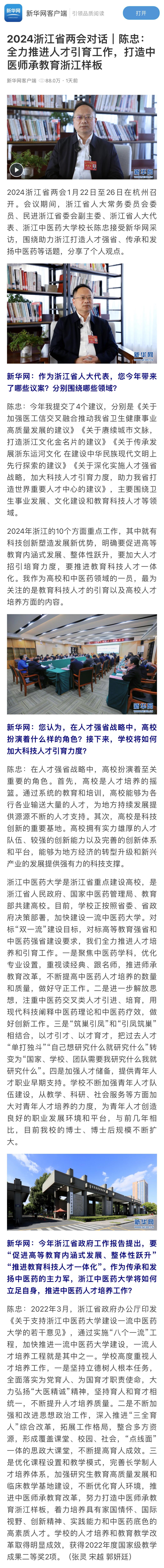 原文如下:2024浙江省两会对话|陈忠:全力推进人才引育工作,打造中医师承教育浙江样板