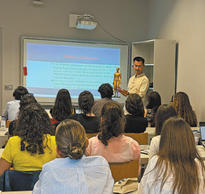 在葡萄牙科英布拉大学医学院,教师叶晓为本科生教授《中医药概览》。