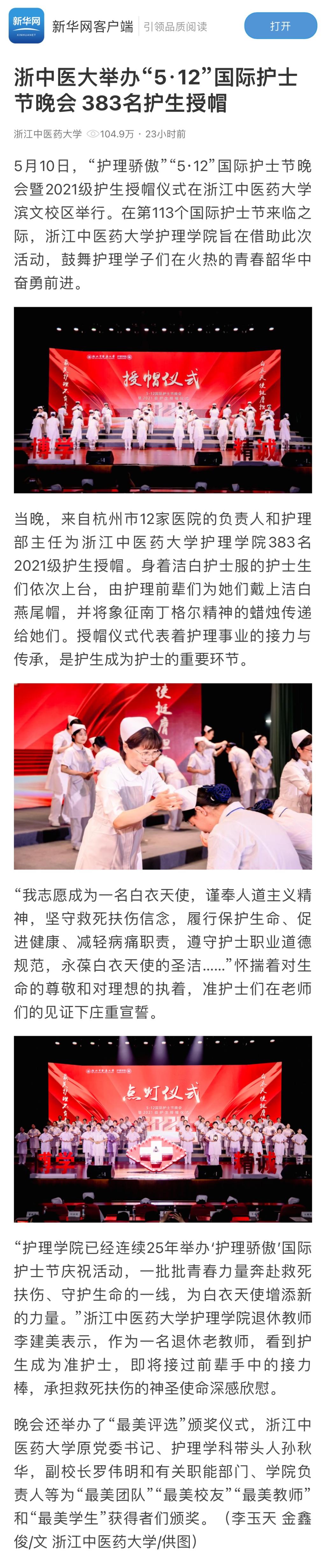新华网:浙中医大举办“5·12”国际护士节晚会 383名护生授帽